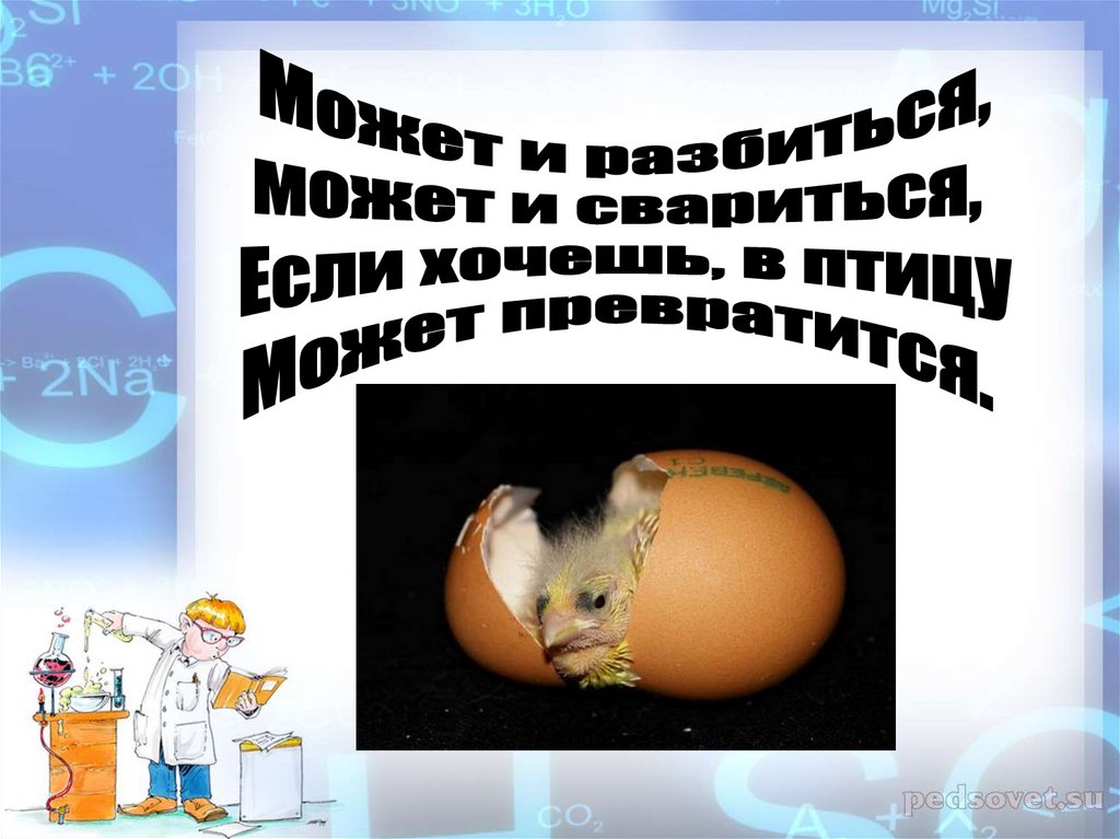 •Провести различные эксперименты с яйцом.