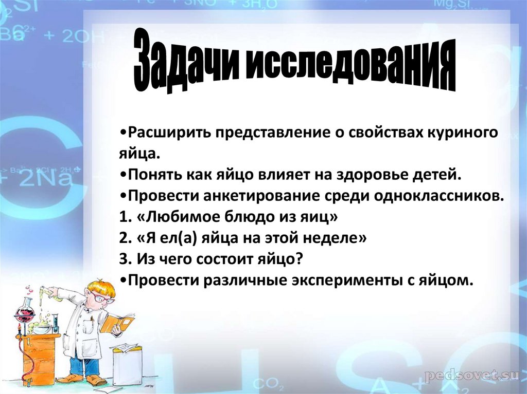 •Понять как яйцо влияет на здоровье детей.