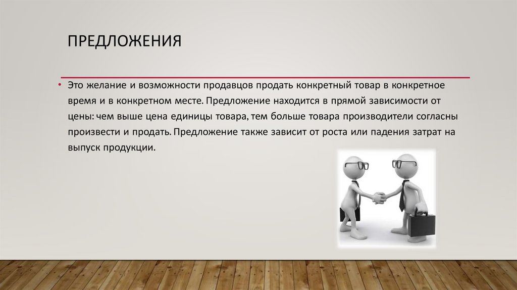 ПРЕДЛОЖЕНИЯ• Это желание и возможности продавцов продать конкретный товар в конкретное