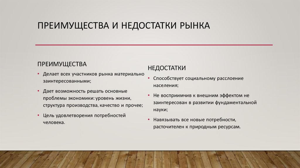 ПРЕИМУЩЕСТВА И НЕДОСТАТКИ РЫНКАПРЕИМУЩЕСТВА