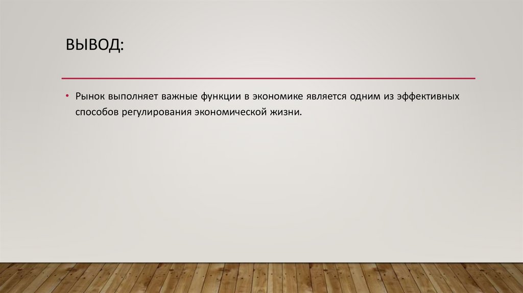 ВЫВОД:• Рынок выполняет важные функции в экономике является одним из эффективных