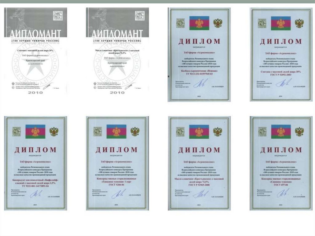 Личные достижения и наградыНа сегодняшний день фирма «Агрокомплекс» стала одним из самых известных