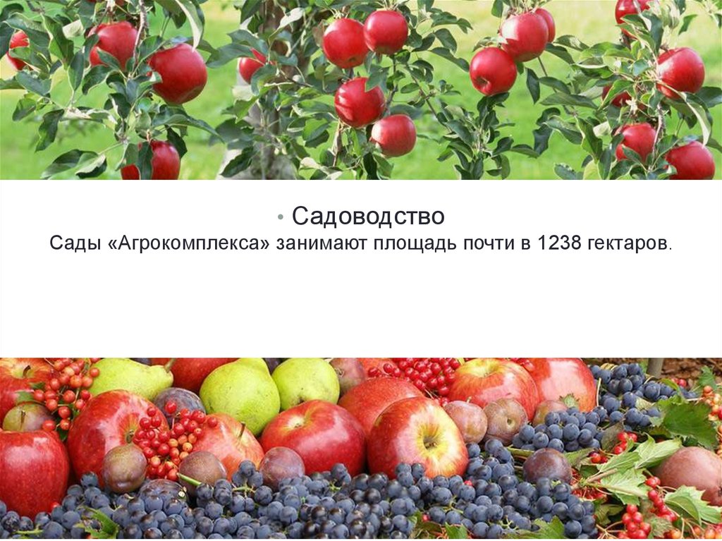 • СадоводствоСады «Агрокомплекса» занимают площадь почти в 1238 гектаров.