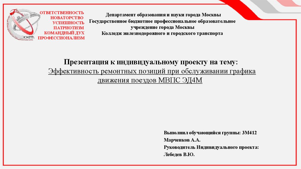 Эффективность ремонтных позиций при обслуживании графика движения поездов МВПС ЭД4М