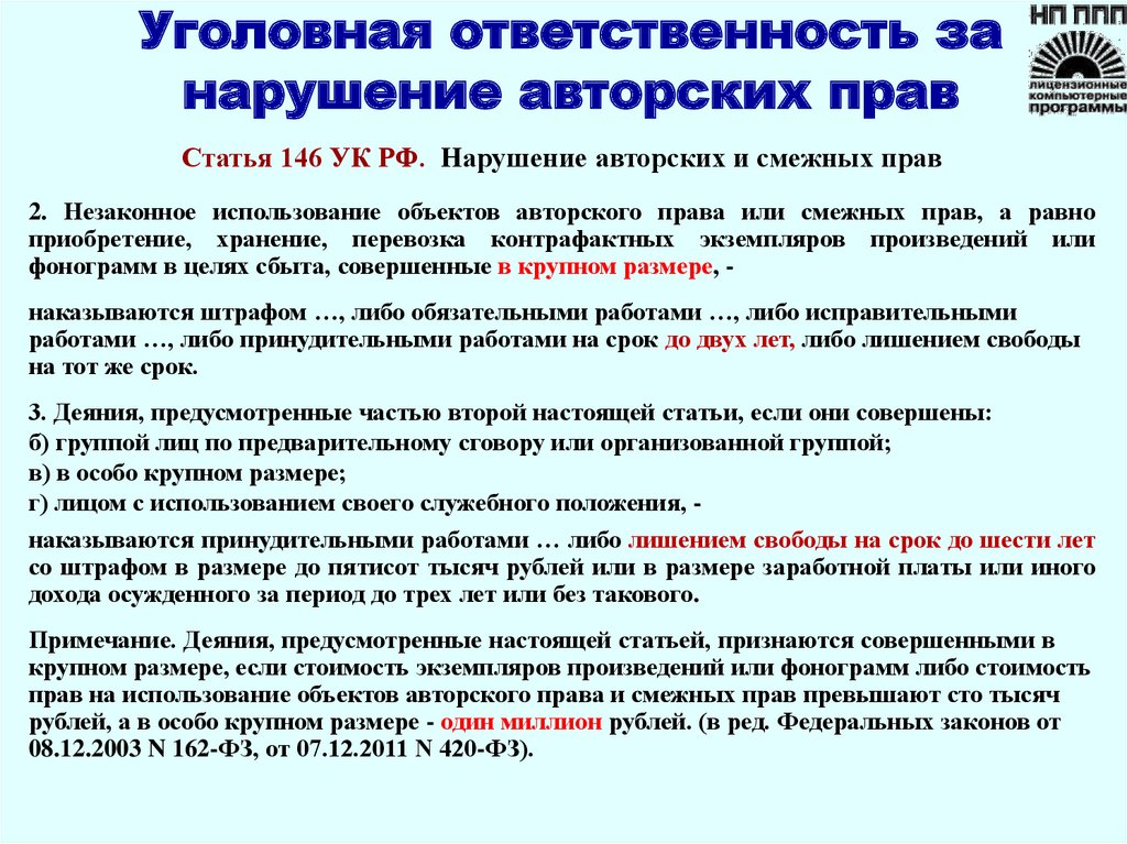Статья 146 УК РФ. Нарушение авторских и смежных прав