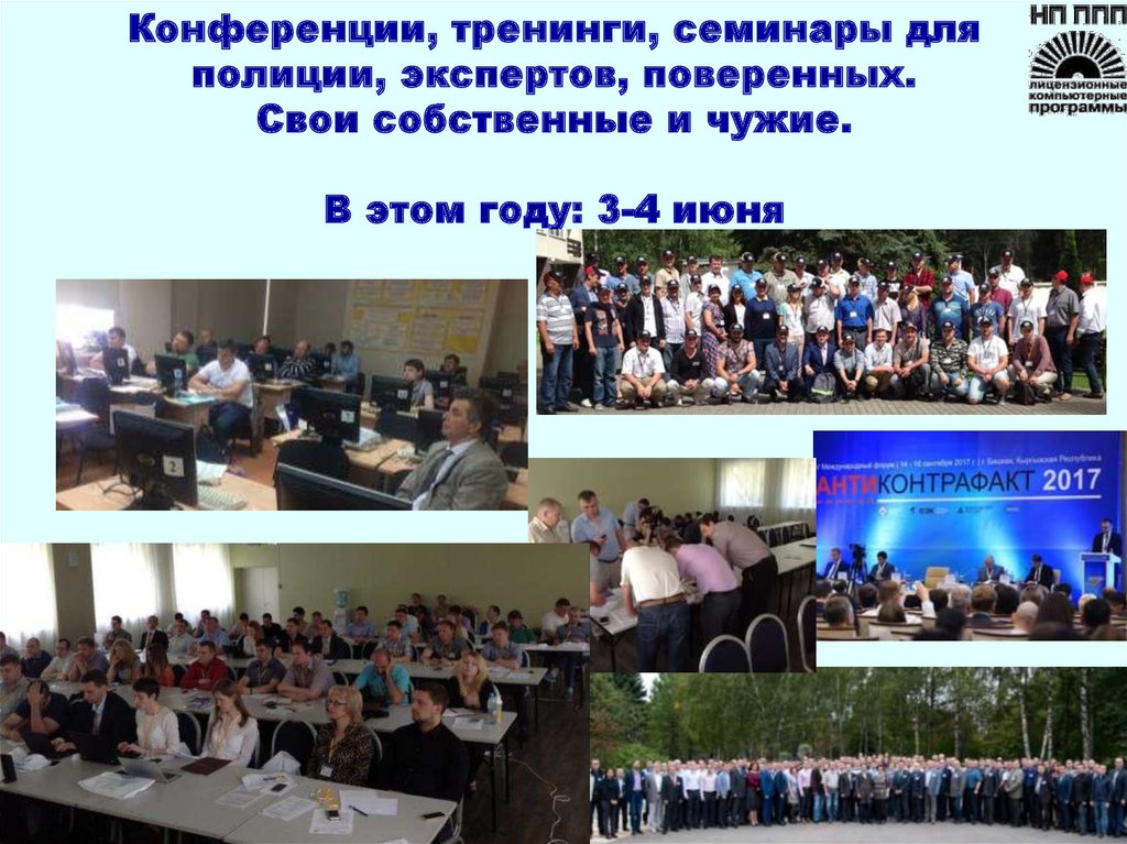 Конференции, тренинги, семинары дляполиции, экспертов, поверенных.
