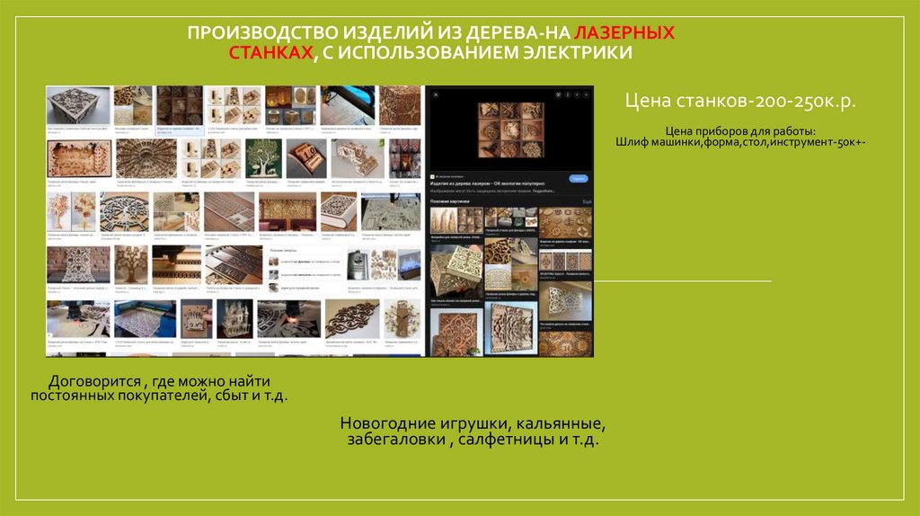 ПРОИЗВОДСТВО ИЗДЕЛИЙ ИЗ ДЕРЕВА-НА ЛАЗЕРНЫХСТАНКАХ, С ИСПОЛЬЗОВАНИЕМ ЭЛЕКТРИКИ