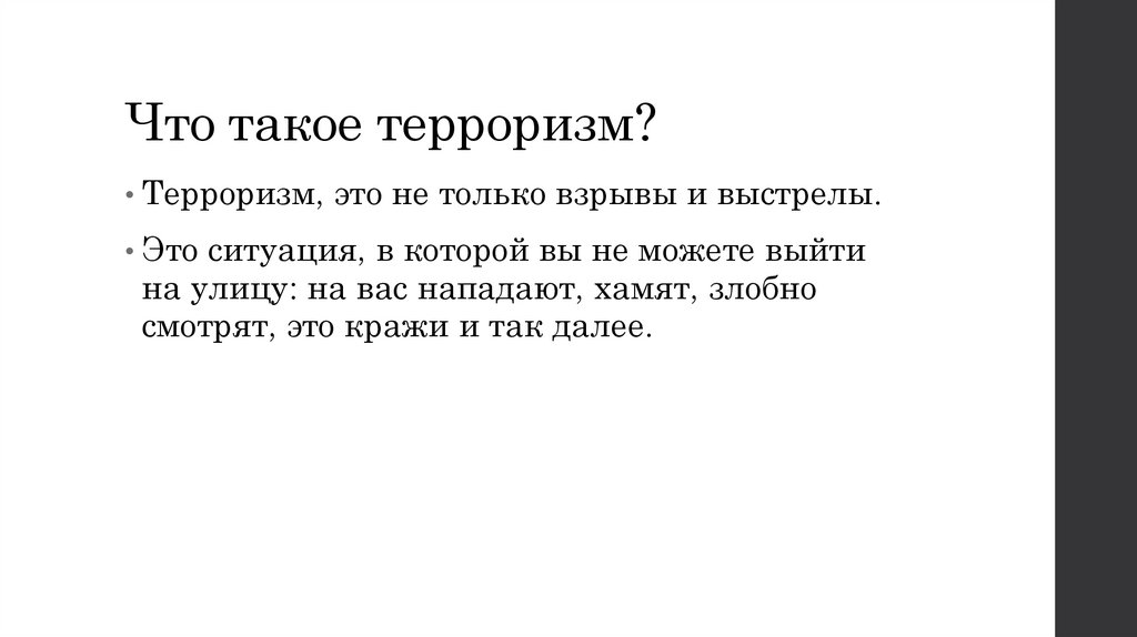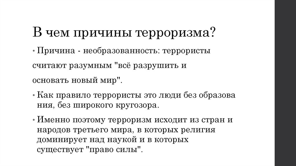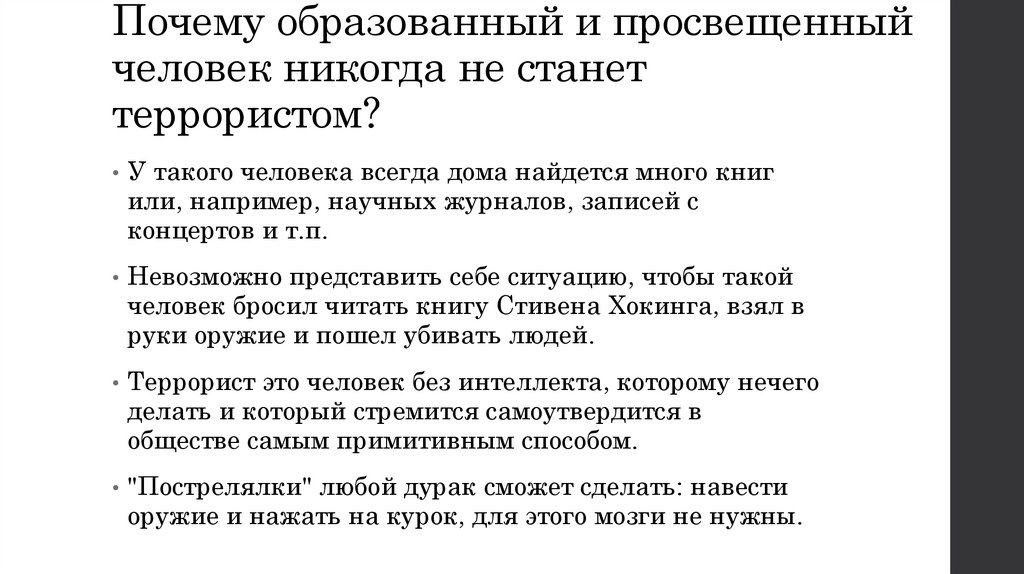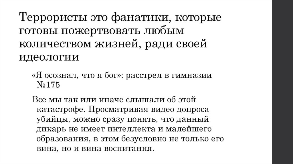 Террористы это фанатики, которыеготовы пожертвовать любым