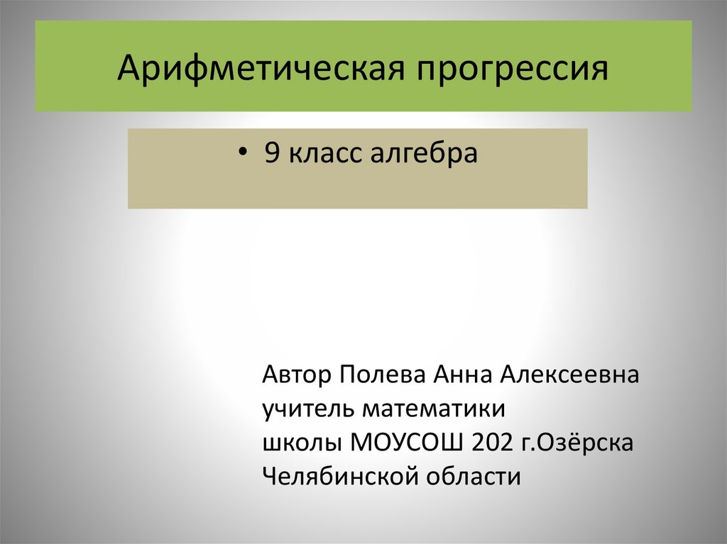 Арифметическая прогрессия• 9 класс алгебра