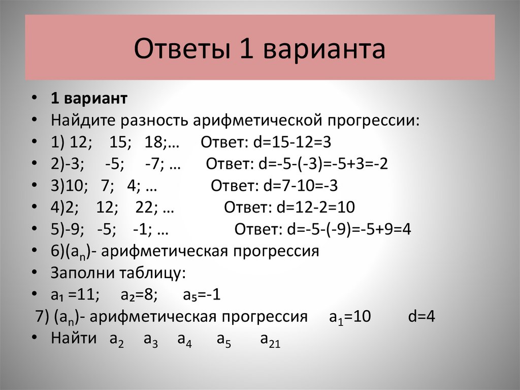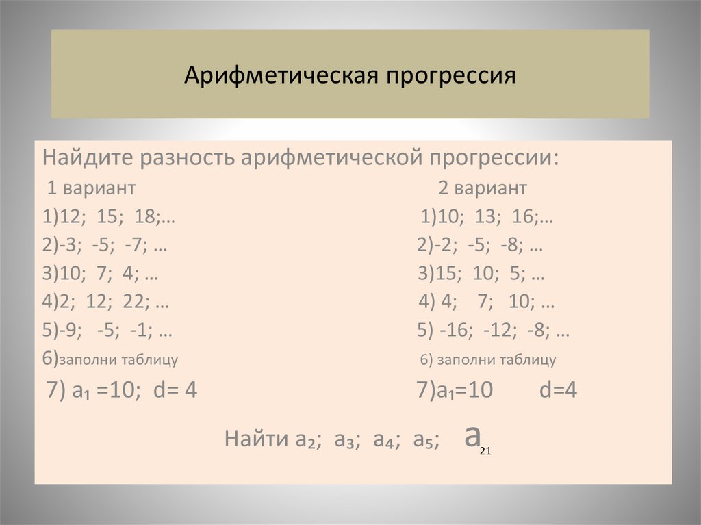 Арифметическая прогрессияНайдите разность арифметической прогрессии: