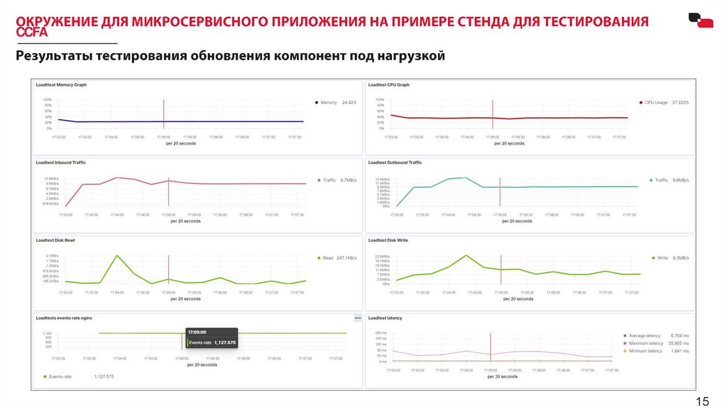 • Результаты нагрузочного тестирования, тестирования на отказоустойчивость и обновление компонент