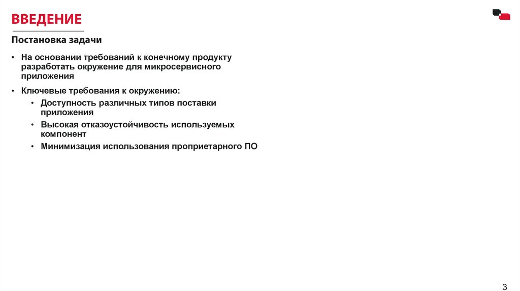 • На основании требований к конечному продуктуразработать окружение для микросервисного