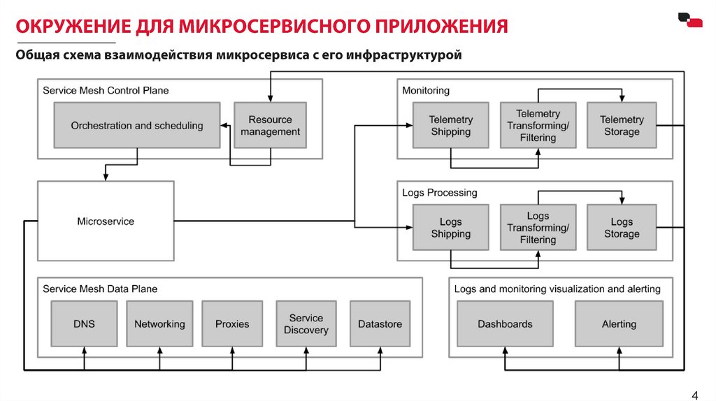• Общая схема взаимодействия микросервиса с его инфраструктурой