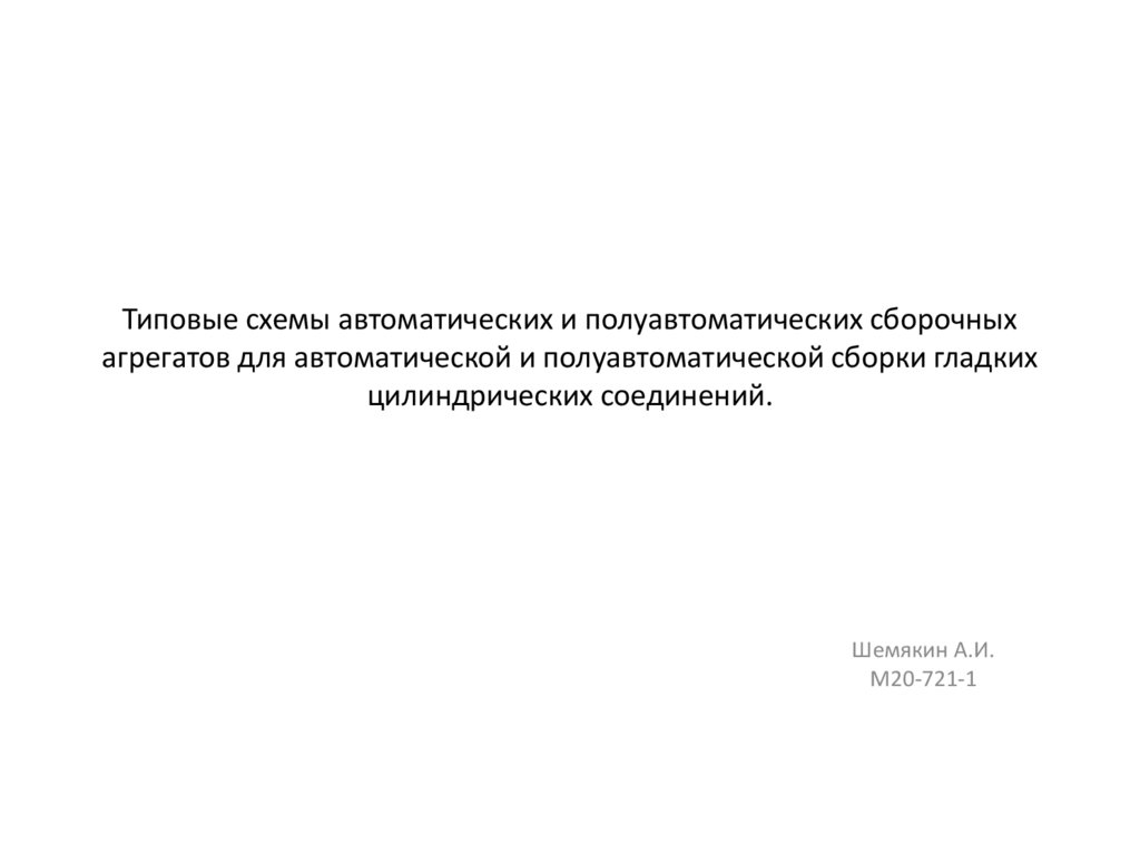 Типовые схемы автоматических и полуавтоматических сборочныхагрегатов для автоматической и полуавтоматической сборки гладких
