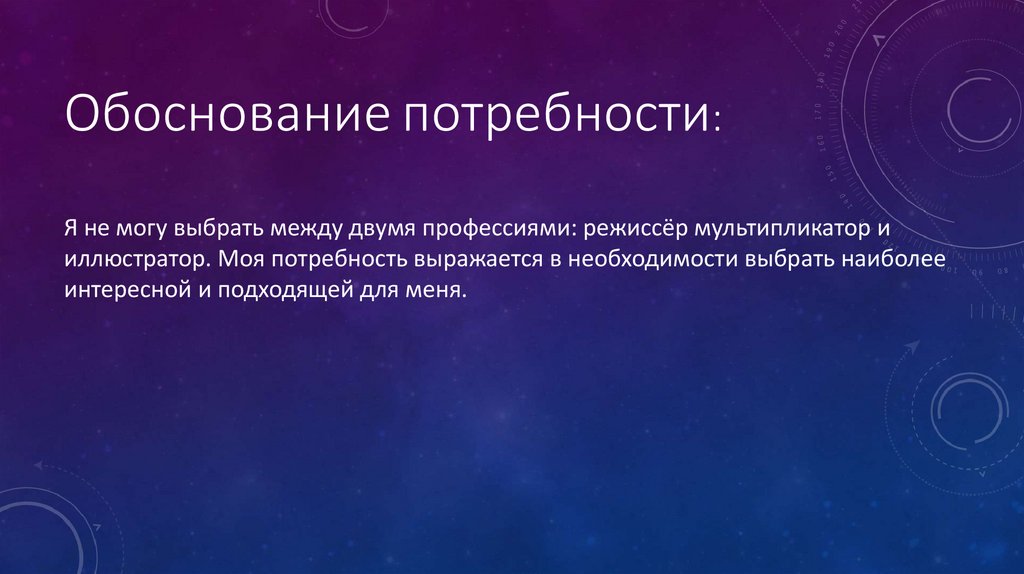 Обоснование потребности:Я не могу выбрать между двумя профессиями: режиссёр мультипликатор и