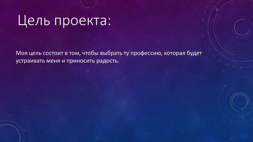 Цель проекта:Моя цель состоит в том, чтобы выбрать ту профессию, которая будет