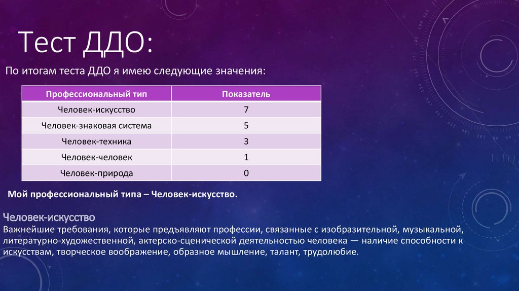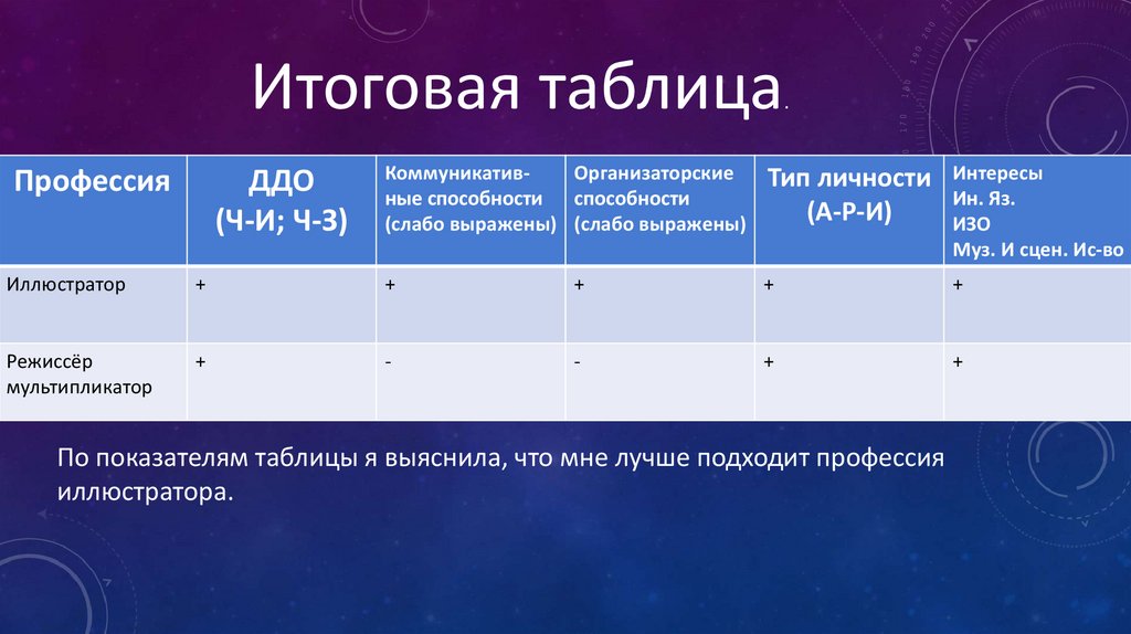 По показателям таблицы я выяснила, что мне лучше подходит профессия