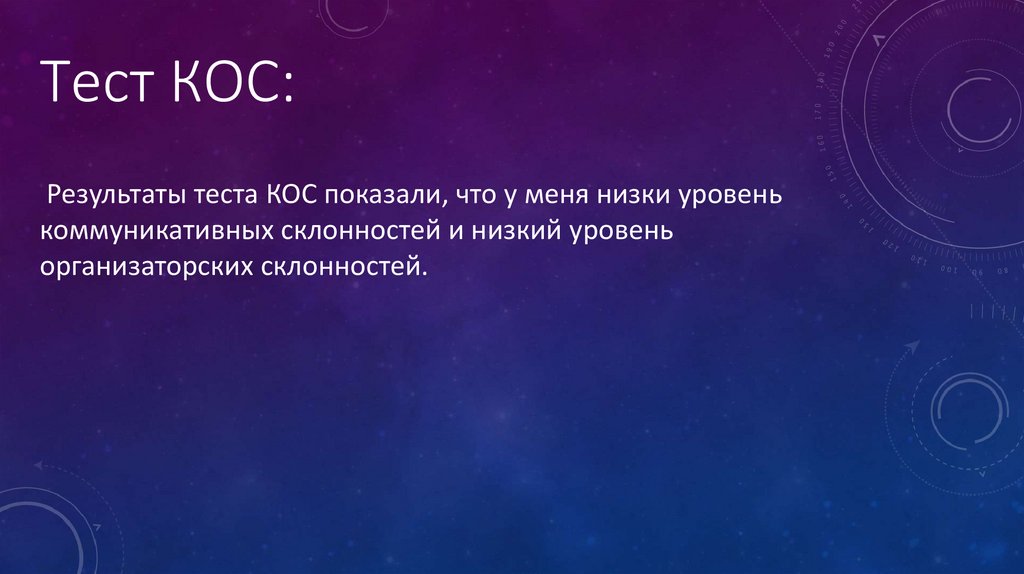 Тест КОС:Результаты теста КОС показали, что у меня низки уровень