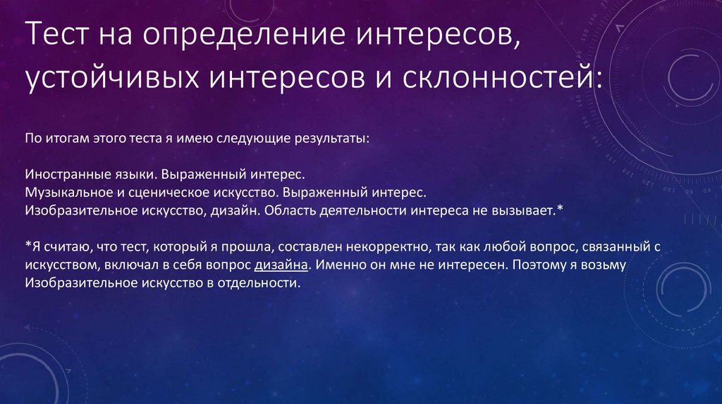 *Я считаю, что тест, который я прошла, составлен некорректно, так как любой вопрос, связанный с