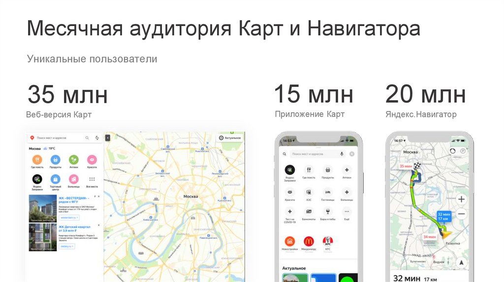 Месячная аудитория Карт и НавигатораУникальные пользователи