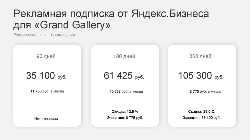 Рекламная подписка от Яндекс.Бизнесадля «Grand Gallery»
