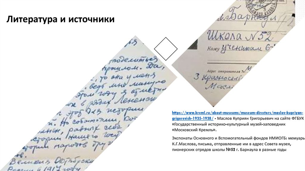 Литература и источникиhttps://www.kreml.ru/about-museums/museum-directors/maslov-kupriyangrigorevich-1935-1938/ - Маслов Куприян Григорьевич на сайте ФГБУК