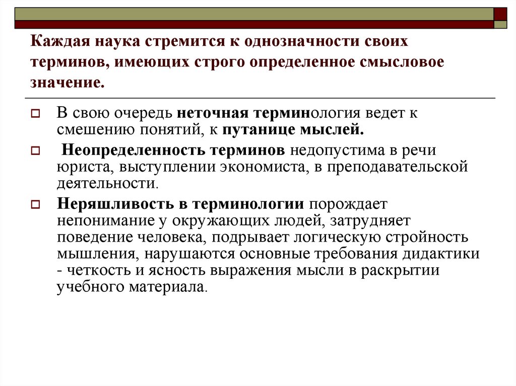 Каждая наука стремится к однозначности своихтерминов, имеющих строго определенное смысловое