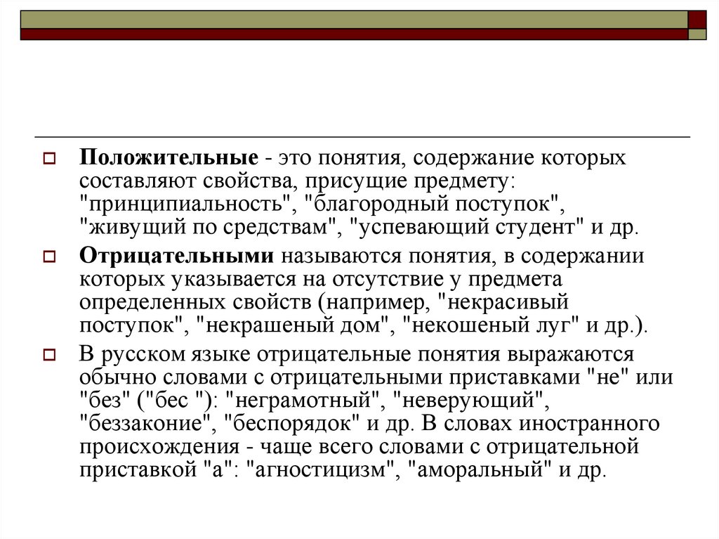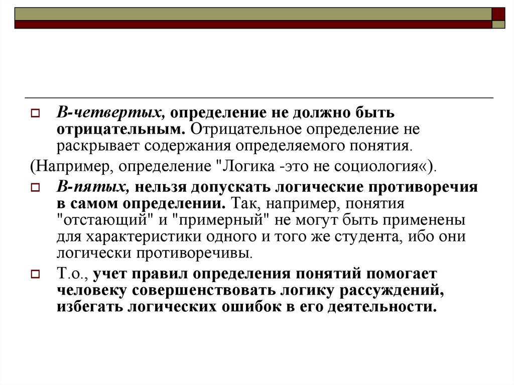В-четвертых, определение не должно бытьотрицательным. Отрицательное определение не