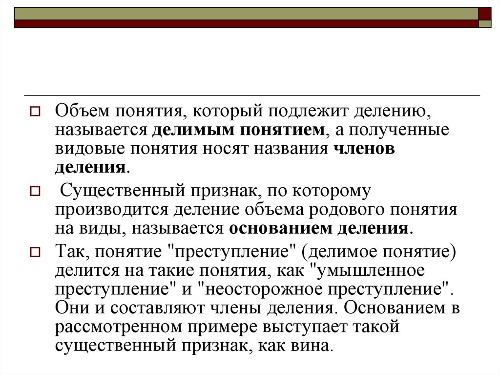 Объем понятия, который подлежит делению,называется делимым понятием, а полученные