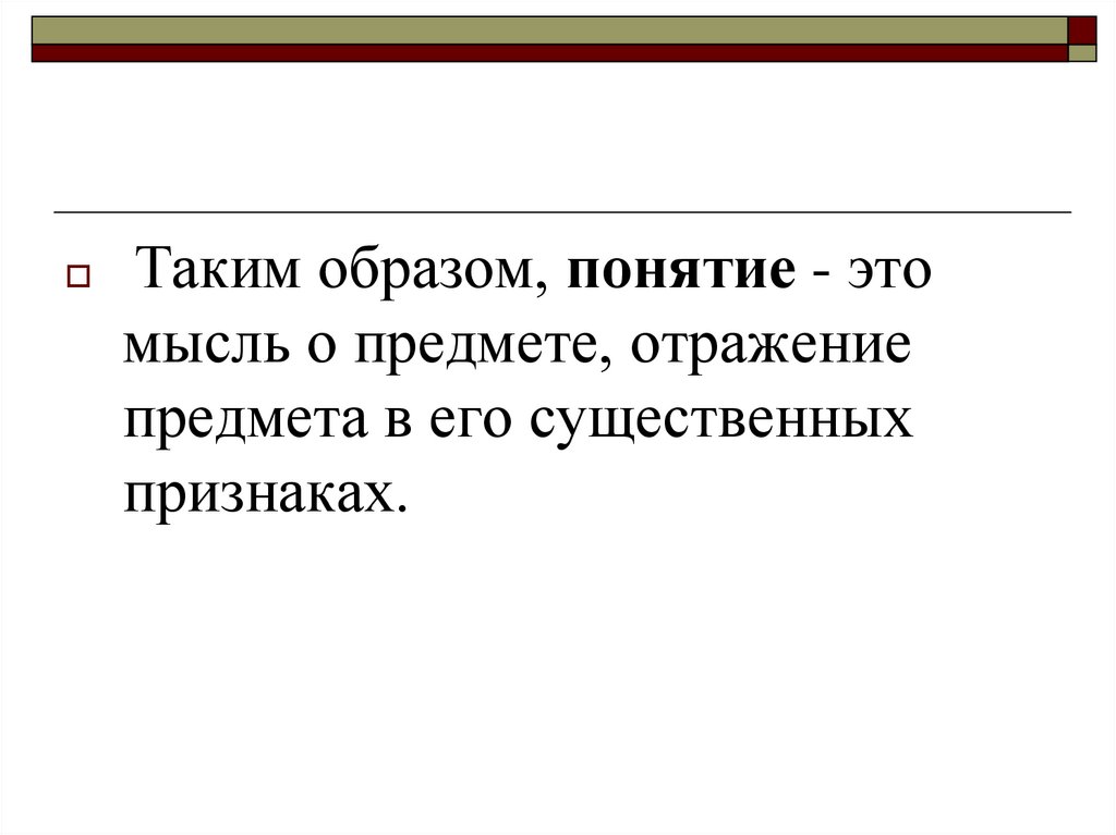 Понятие как форма мышленияПредметом мысли может быть любая вещь,