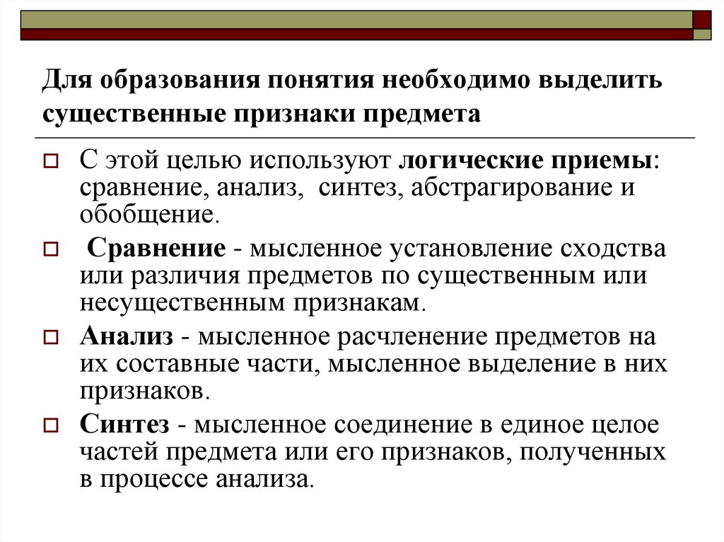 Для образования понятия необходимо выделитьсущественные признаки предмета