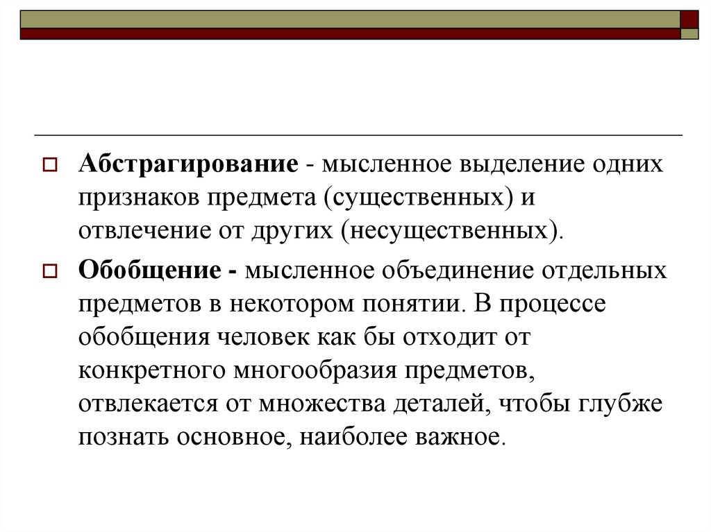 Абстрагирование - мысленное выделение однихпризнаков предмета (существенных) и