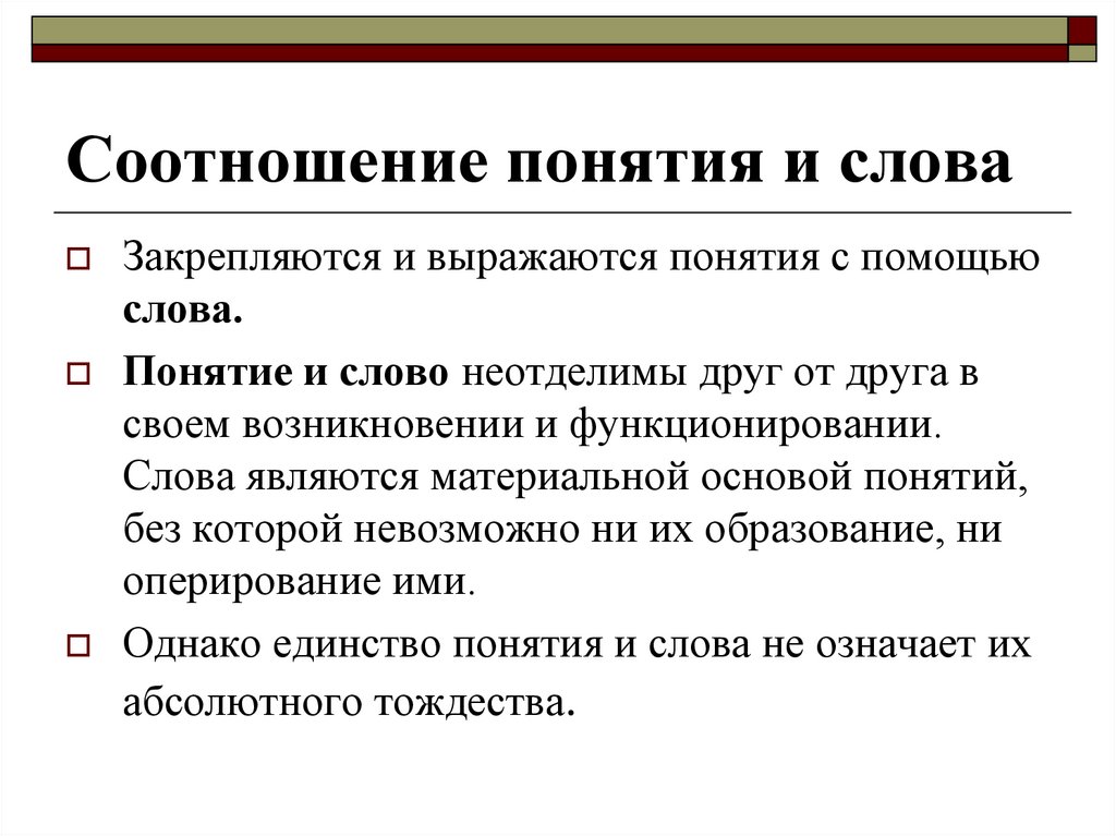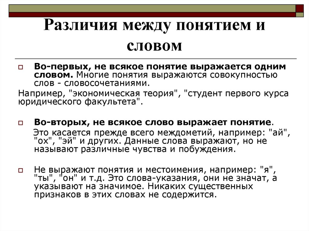 В-третьих, понятие и слово не всегда однозначносоответствуют друг другу.
