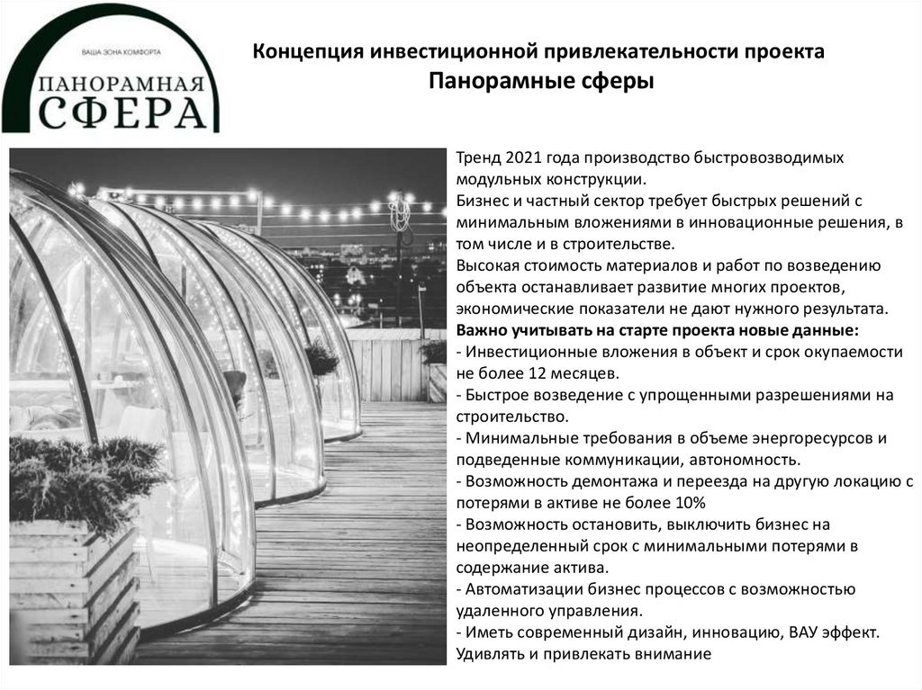 Концепция инвестиционной привлекательности проектаПанорамные сферы
