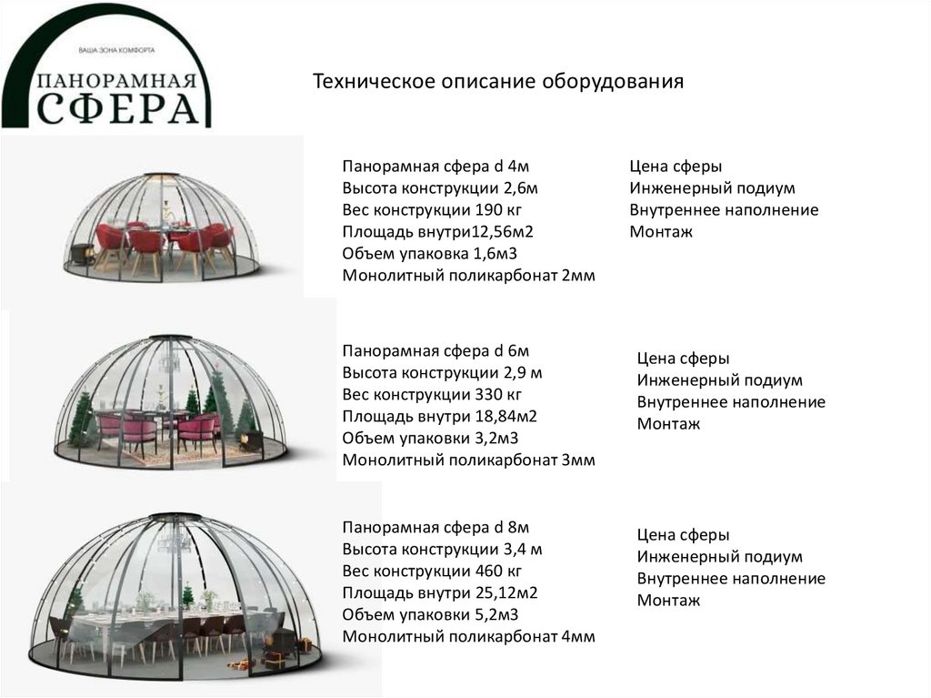 Техническое описание оборудованияПанорамная сфера d 4м