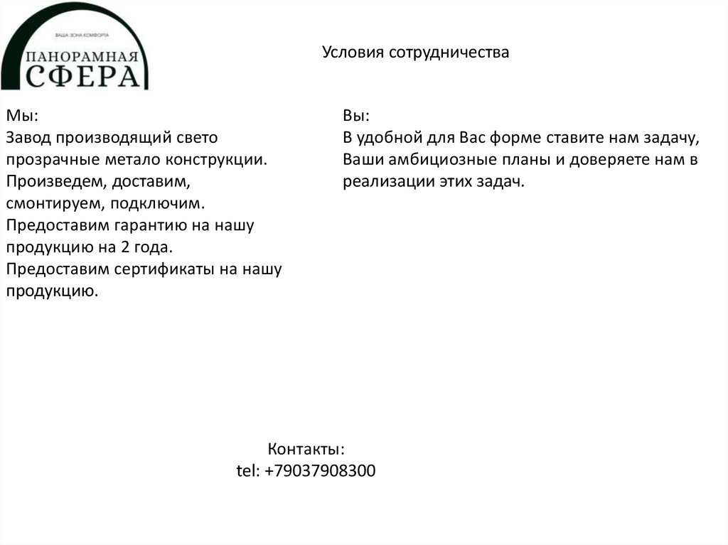 Условия сотрудничестваМы: