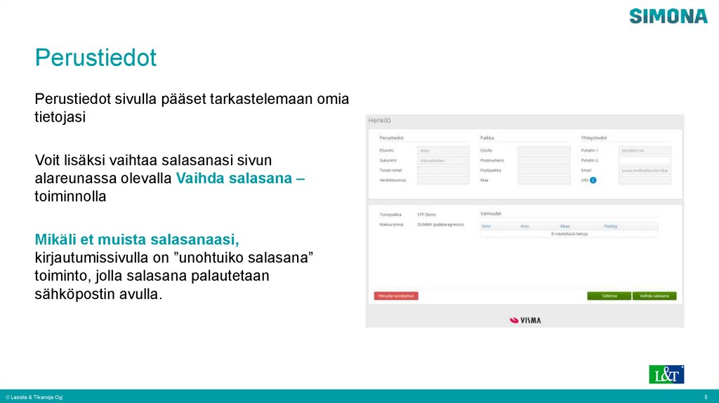 PerustiedotPerustiedot sivulla pääset tarkastelemaan omia