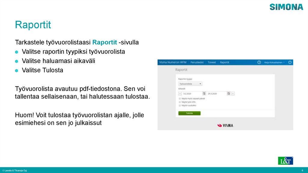 RaportitTarkastele työvuorolistaasi Raportit -sivulla