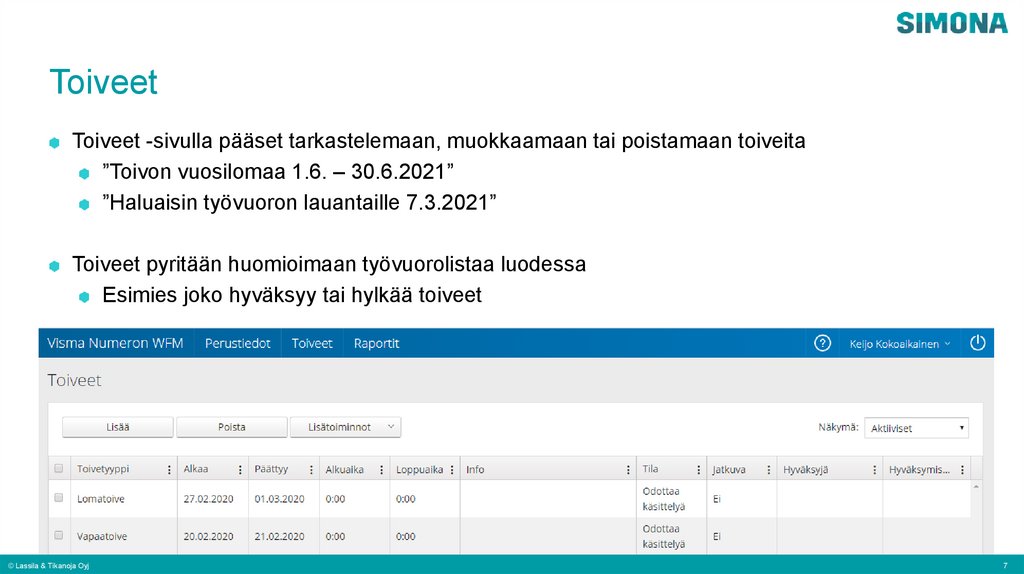 Toiveet pyritään huomioimaan työvuorolistaa luodessa
