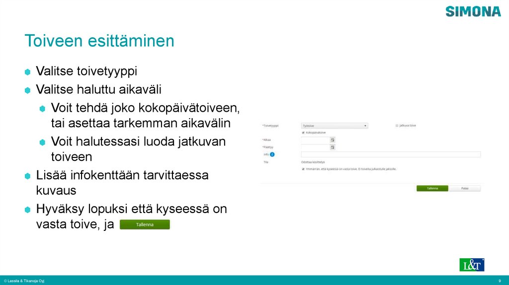tallentaa sellaisenaan, tai halutessaan tulostaa.