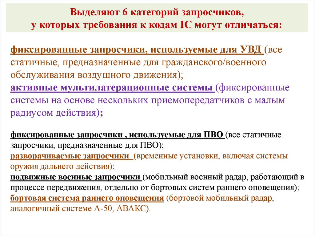 Присвоение кодов в Режиме S для запросчиков с фиксированным положением