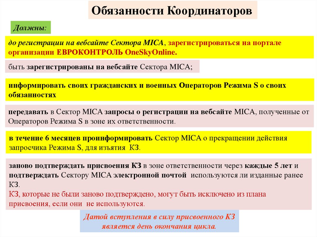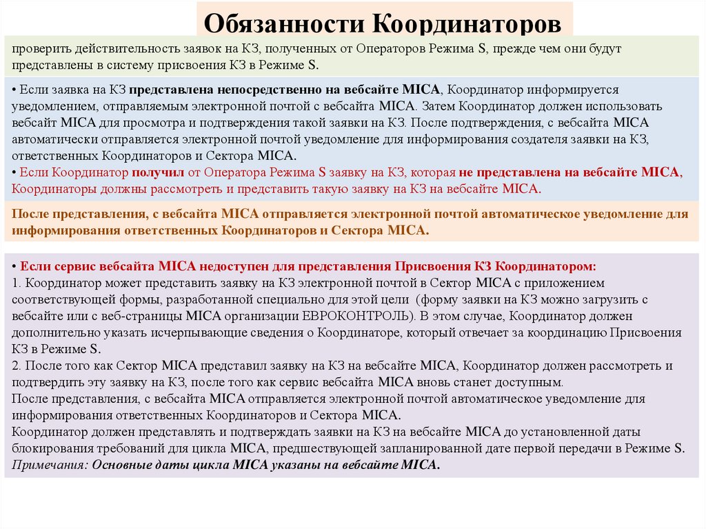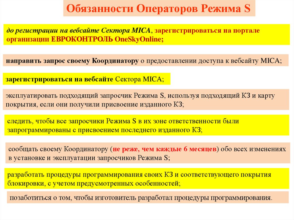 6. Оператору режима S и его дублеру, обеспечить взаимодействие с Сектором MICA