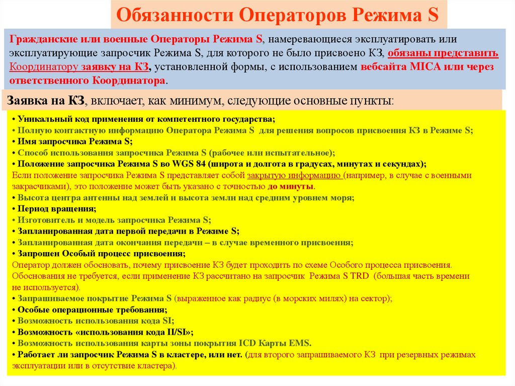 Режима S, так как в существующие изданные присвоения КЗ не будут вноситься изменения, могут быть