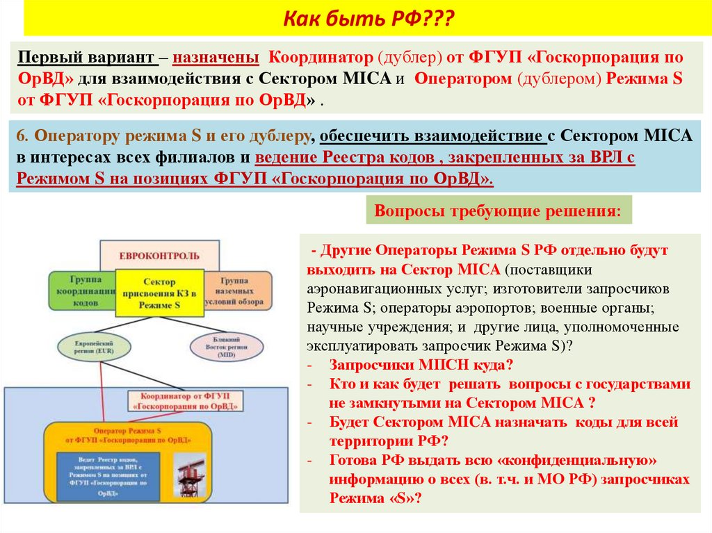 ОрВД» для взаимодействия с Сектором MICA и Оператором (дублером) Режима S
