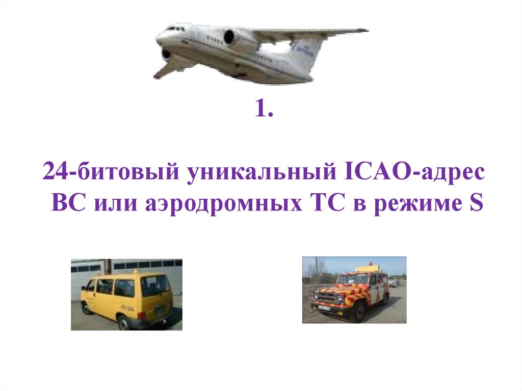 1. 24-битового уникальный ICAO-адрес ВС или аэродромным ТС в