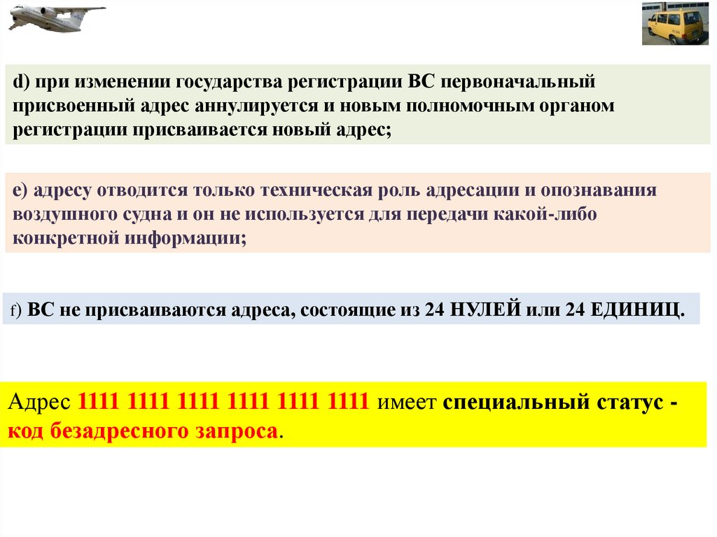 а) Ни один адрес не присваивается более чем одному воздушному судну, за