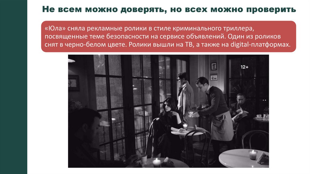 Не всем можно доверять, но всех можно проверить«Юла» сняла рекламные ролики в стиле криминального триллера,