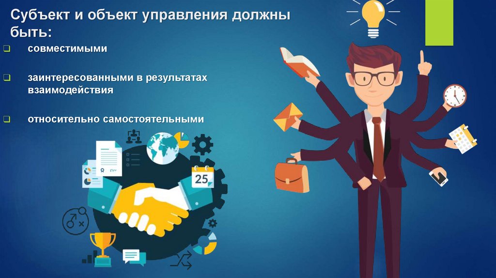 Субъект и объект управления должныбыть: