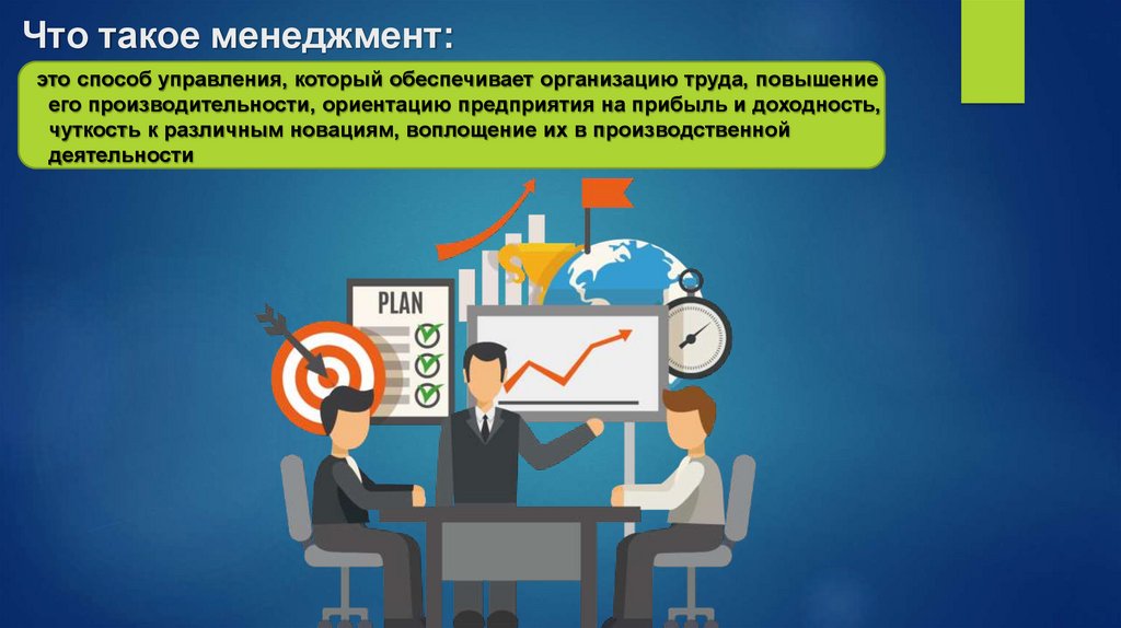 Что такое менеджмент:это способ управления, который обеспечивает организацию труда, повышение