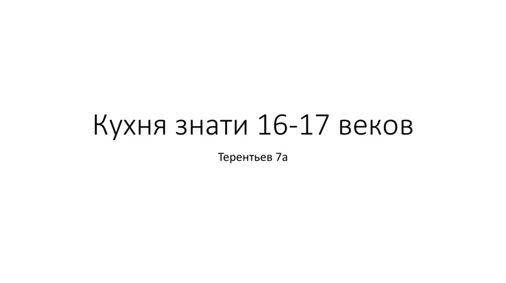 Кухня знати 16-17 веков